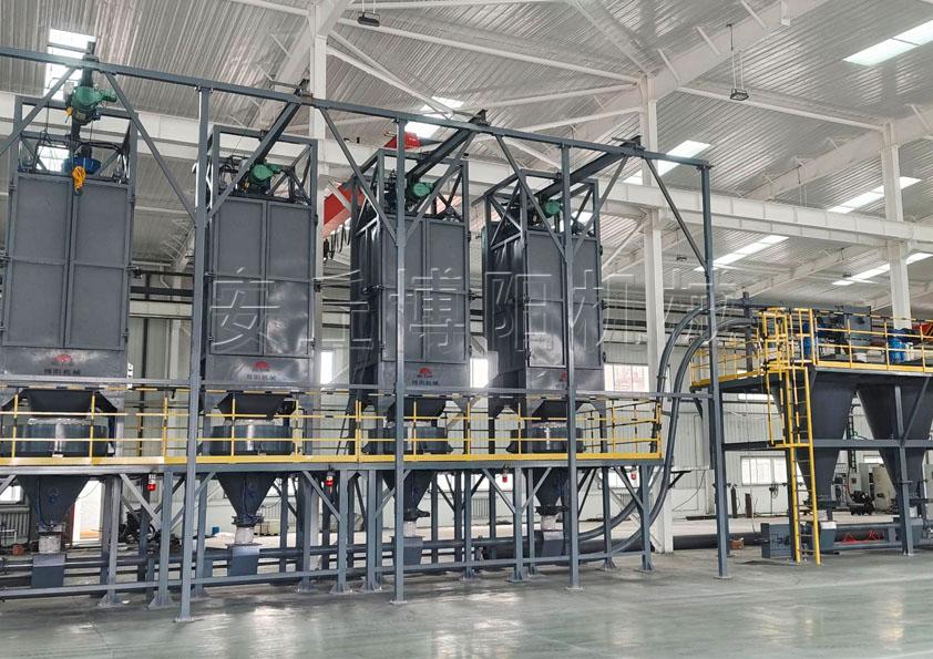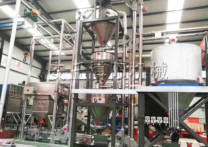 2、拍打設(shè)備可以保障物料順利從大袋進入下步工序;破碎機在開袋過程中對結(jié)塊進行破碎,保障下步工序的順利進行;磁選機可對大袋中的異物進行清除;